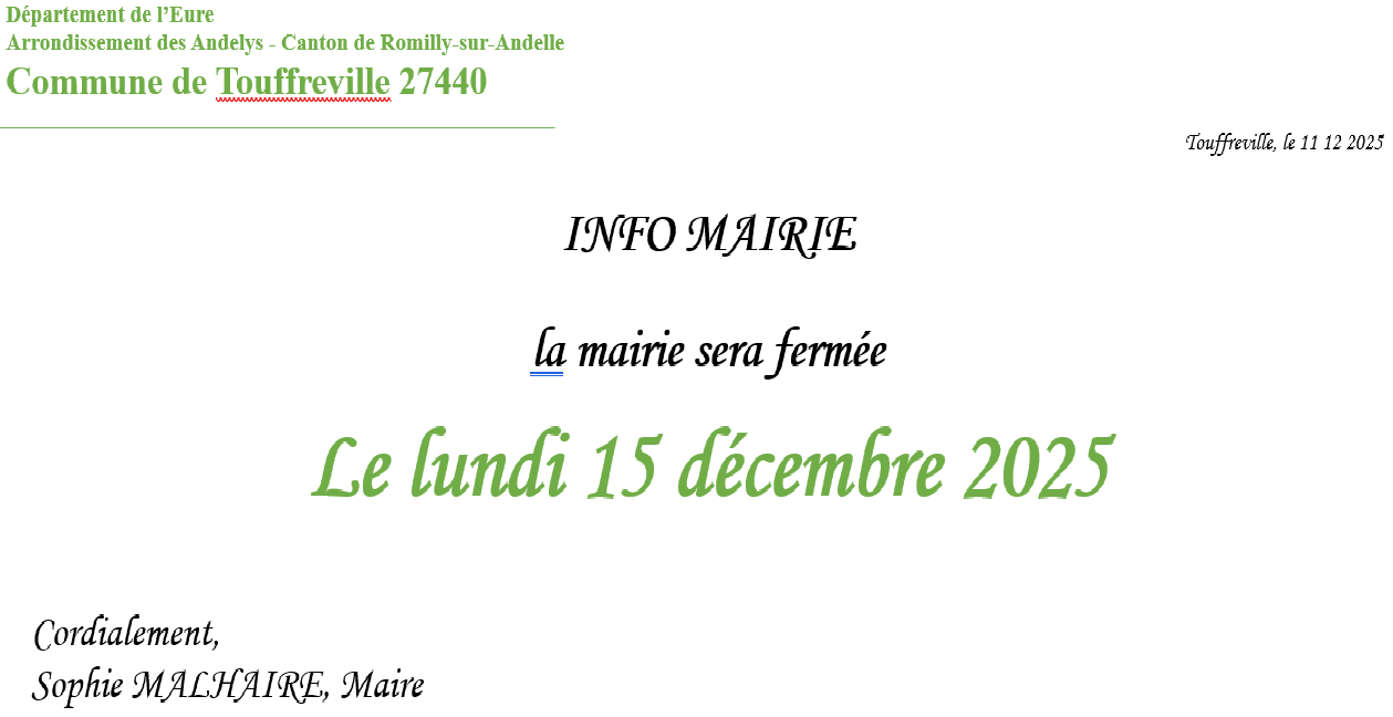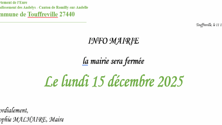 FERMETURE MAIRIE LUNDI 15 12 2025